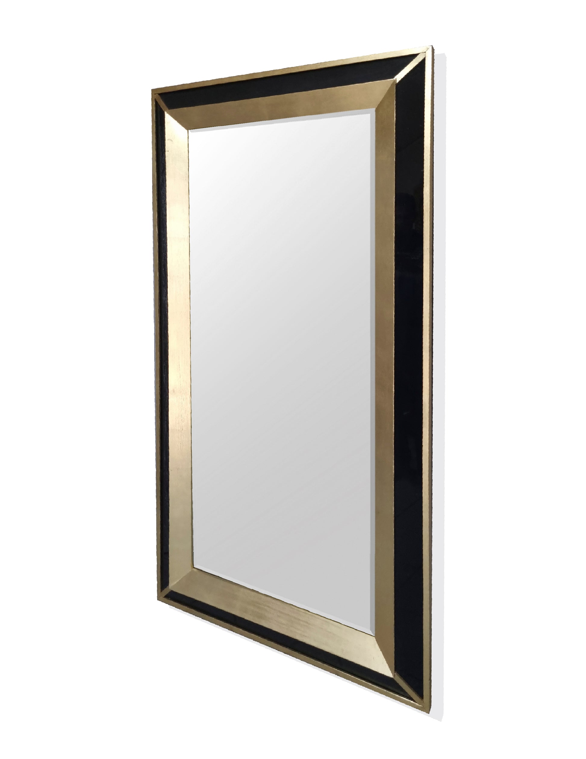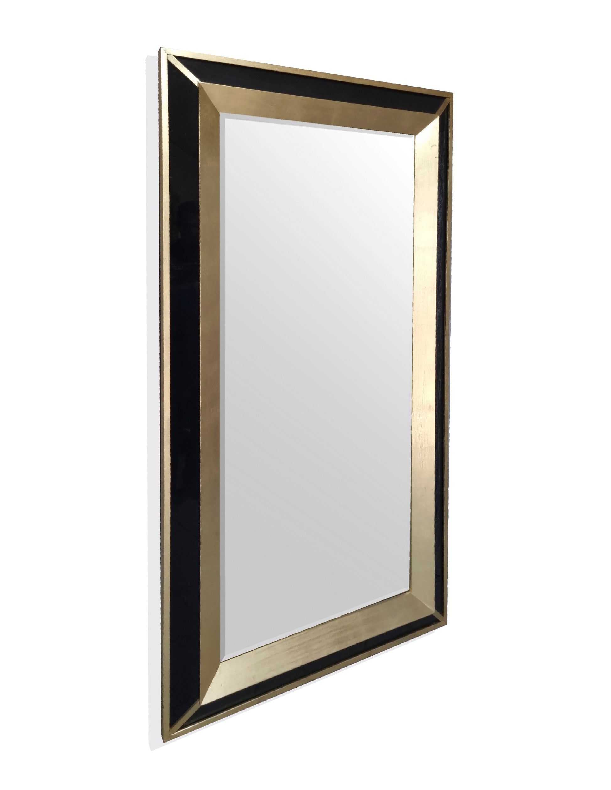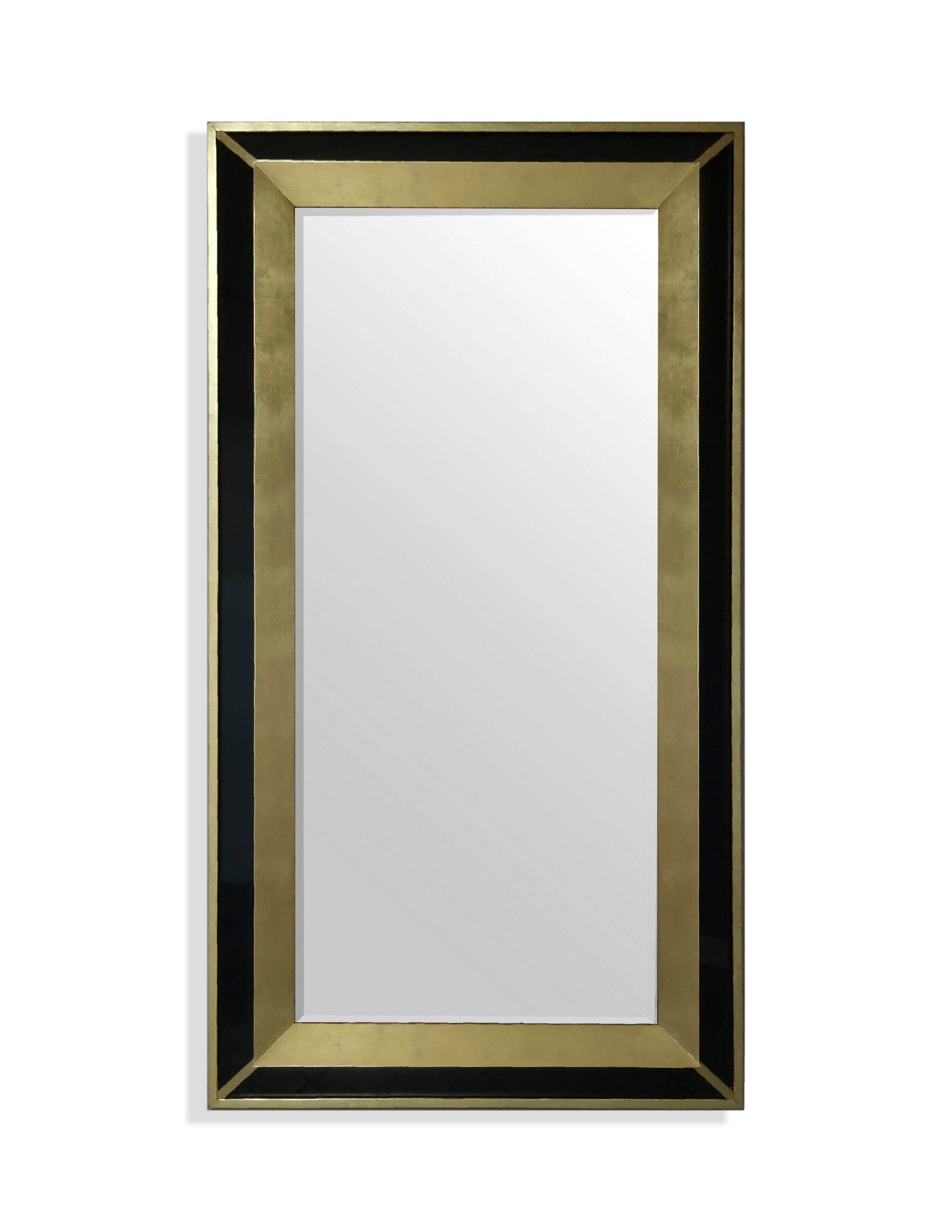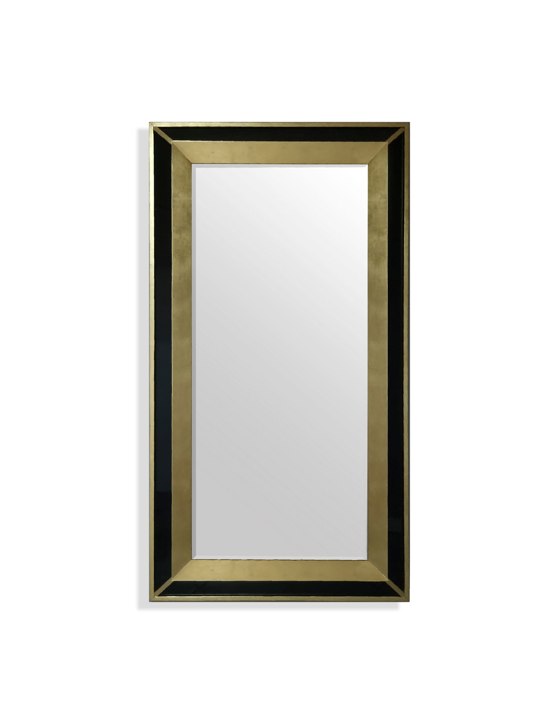 Espejo de pie de Madera con Acabado en Oro de Hoja natural y de cristal negro, Espejo biselado de 5 mm (centro), será el centro de atención en cualquier decoración.