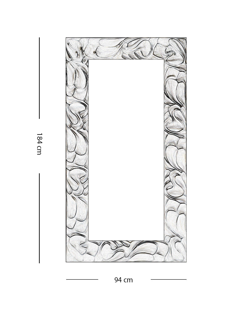 Tiene espejo biselado de 5 mm, lo cual resalta los bordes exteriores del mismo. El espejo esta unido a una capa de seguridad, evitando que los pedazos caigan libremente en caso de accidentalmente quebrarlo. Puede ir colgado de manera horizontal o vertical (herrajes ya incluidos), pero por su tamaño puede quedar como espejo de pie también.