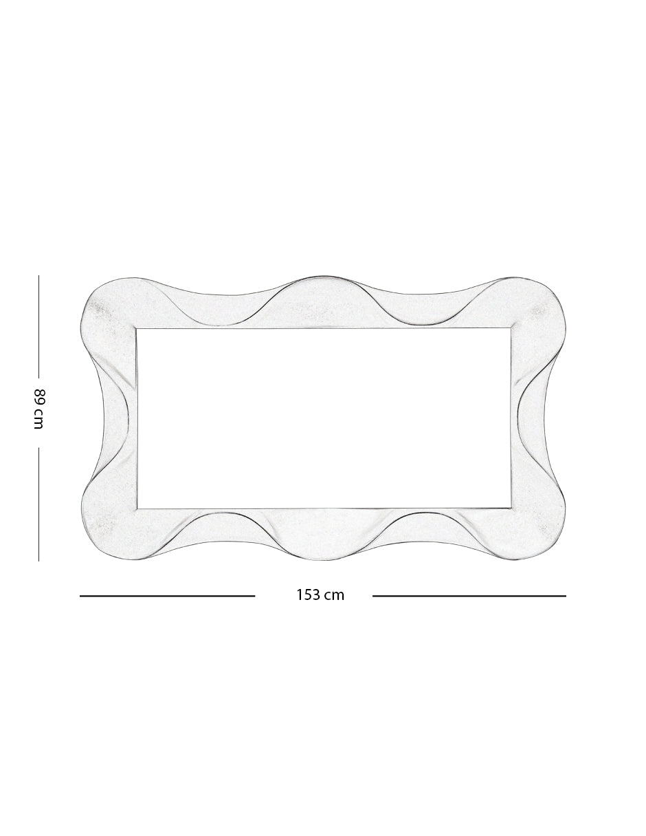 Tiene espejo biselado de 5 mm, lo cual resalta los bordes exteriores del mismo. Puede ir colgado de manera horizontal o vertical (herrajes ya incluidos), pero por su tamaño puede quedar como espejo de pie también.