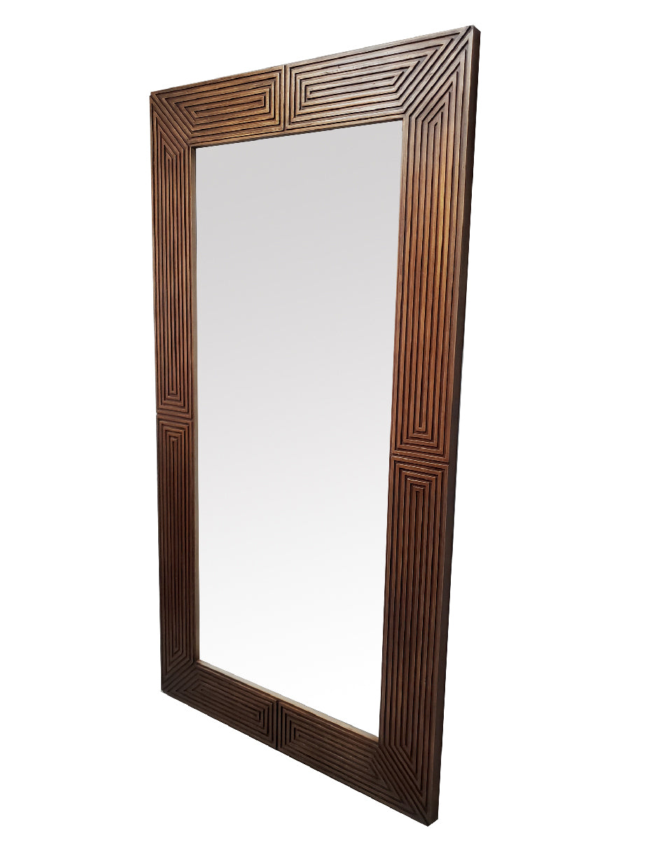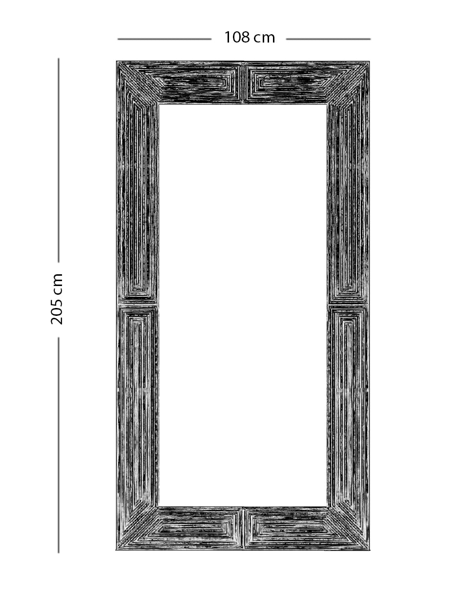 Tiene espejo biselado de 5 mm. El espejo esta unido a una capa de seguridad, evitando que los pedazos caigan libremente en caso de accidentalmente quebrarlo. Es espejo de Pie, pero puede colgarse de manera vertical u horizontal en la pared.